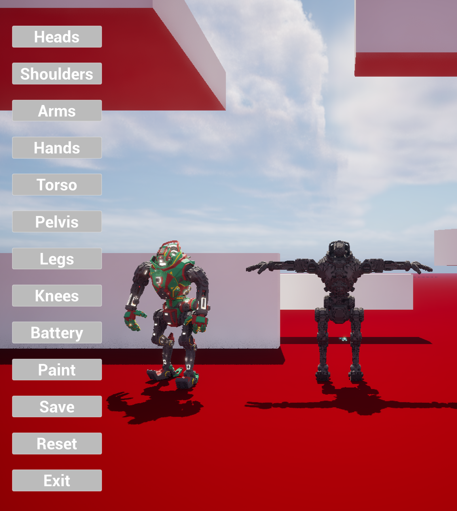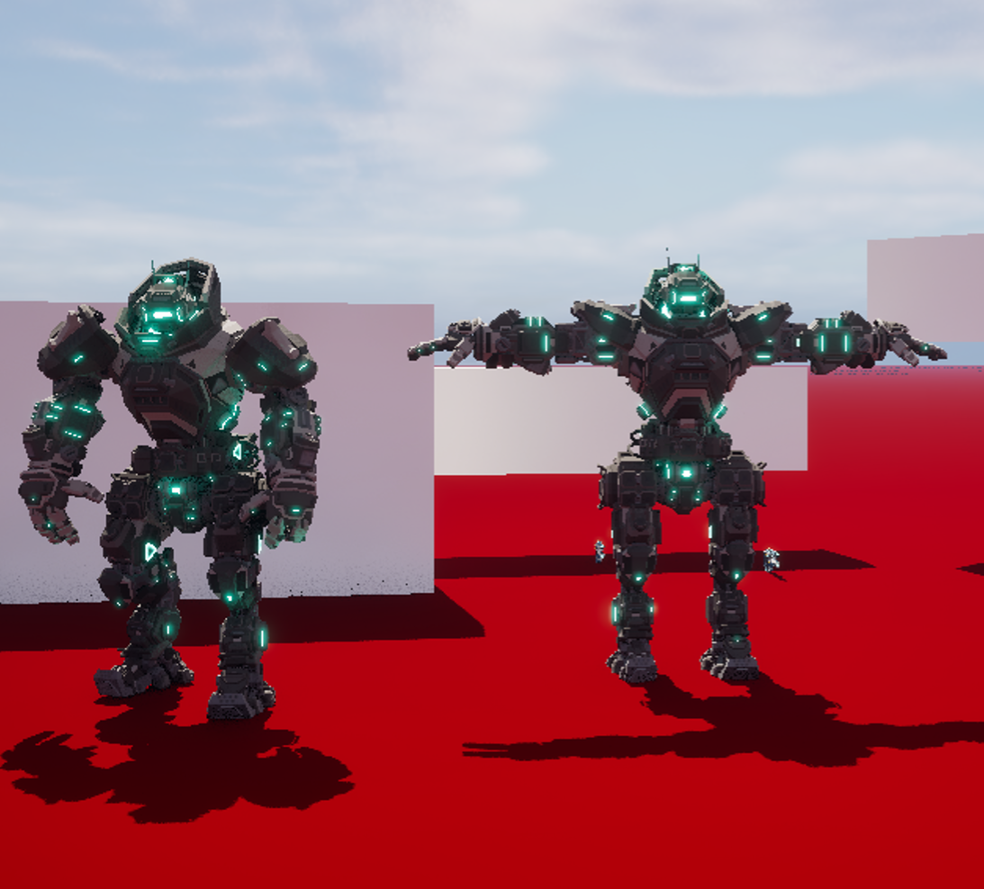 In this image the mech used for customization had issues pulling the material data from the player mech, I was also having this issue with the player mech pulling material data from the customizable mech, but added a temporary fix. The problem was because I was using a instance to store the material data directly from the mech, which was causing issues like this. The solution was to create a helper function to store the date in a dynamic instance. This did cost a lot of time trying to figure out how to fix this, but the end results were worth it, as we now have full customization of our mechs.